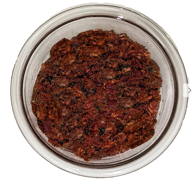 Ingredients: Pork Heart, Beef Heart, Beef Kidney, Beef Tripe, Pork Liver, Eggs, Bone Meal, Kale, Cranberries, Goat Milk, Cod Liver Oil, Dried Kelp, Dried Colostrum